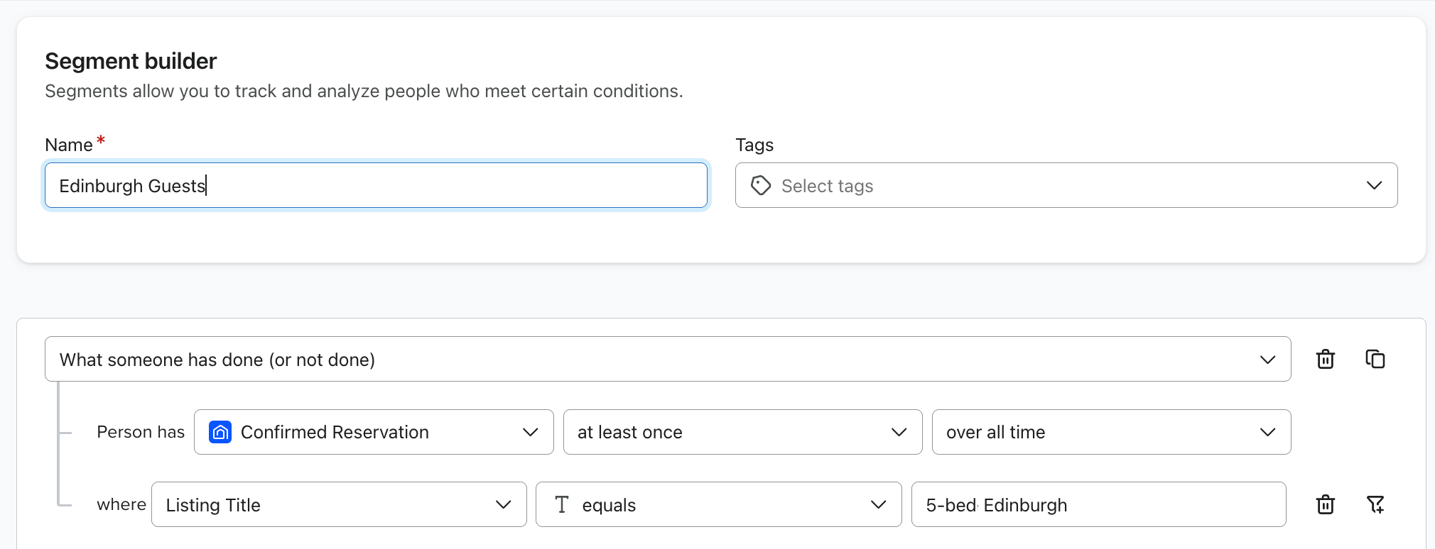 You can use Guesty metrics to segment guests. For example, you can create a segment of guests who have confirmed a reservation at a specific location.