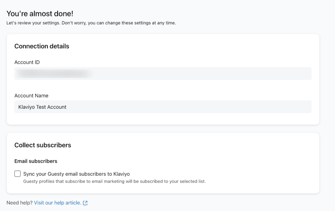- On the next page, check the box Sync your Guesty email subscribers to Klaviyo if you’d like to do so.