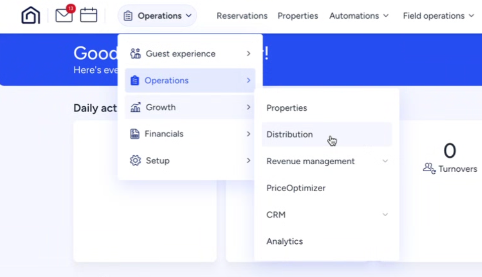 - Select the Operations dropdown at the top, then select Growth > Distribution.