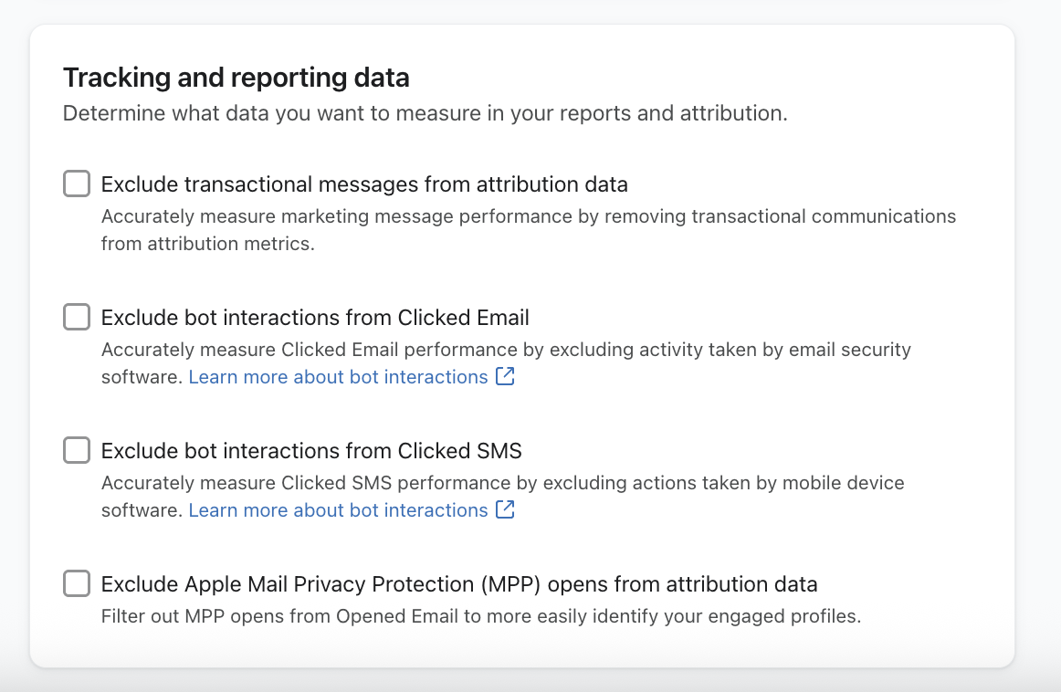 You can also remove machine opens or bot clicks from your attribution to ensure more accurate tracking.