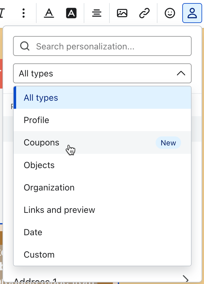 - Click the personalization icon. Depending on your editor, you may see a person icon, or a button labeled Personalization.